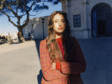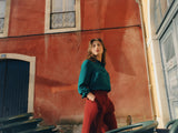 What you'll see most in our collections is the close, form-fitting silhouette and emphasis on the waist. We have many knit sweaters and cardigans that fall slightly higher, allowing you to beautifully pair them with high-waisted pants or skirts. This creates that emphasis on the waist. Our dresses and jumpsuits also often feature a fitted waist.